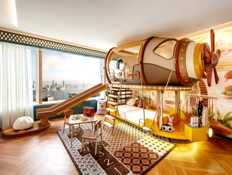 Island Shangri-La’s Airship Voyage Themed Family Suite is a dramatic, design-driven space that blends Hong…