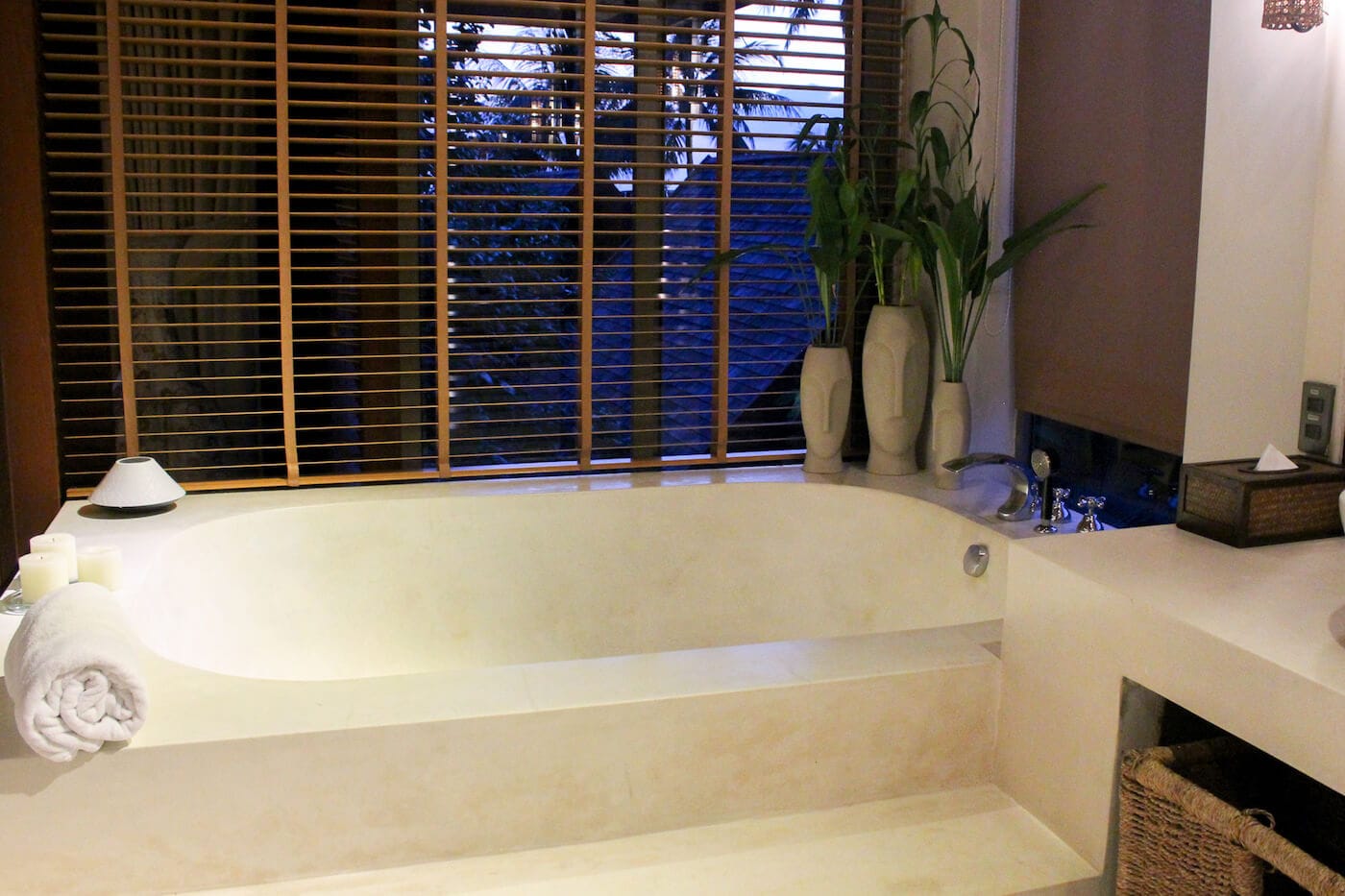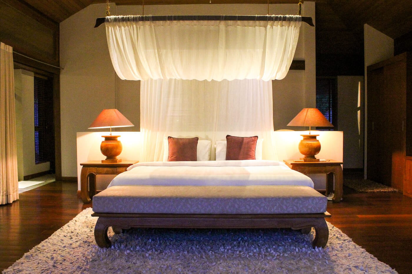 The master suite in Baan Kilee—above the flexible dining space—featured a second twin room, ideal for families travelling with children, or a group of friends, and with a private balcony overlooking the estate offered amazing views noon and night. It also had the largest bathtub, which as it was indoors on the second floor, offered a little more privacy.