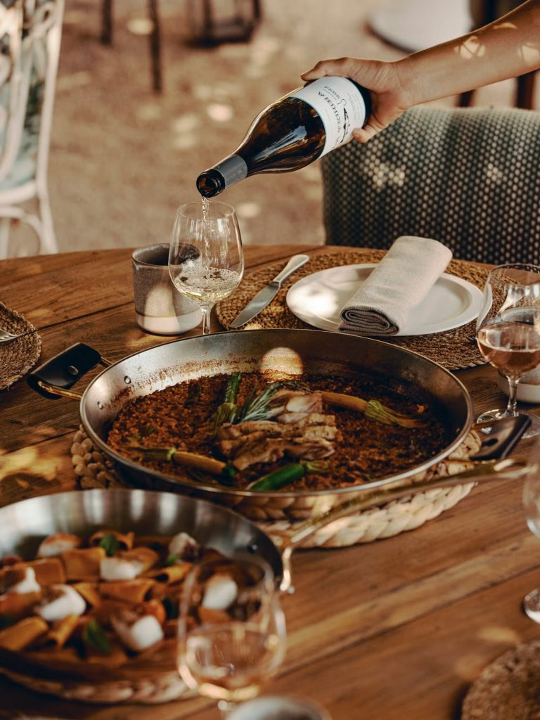 Dining at Soho Farmhouse is inextricably linked to its wellness philosophy. Meals are crafted from locally sourced, seasonal ingredients, with a focus on flavour, freshness, and nourishment. The outdoor restaurant, nestled among the olive trees, serves Balearic-inspired dishes such as grilled langoustines, fresh seafood, and the island’s signature ensaimada. For lighter, social fare, tapas-style options feature garden-fresh vegetables, calamari, and pan cristal con tomate.