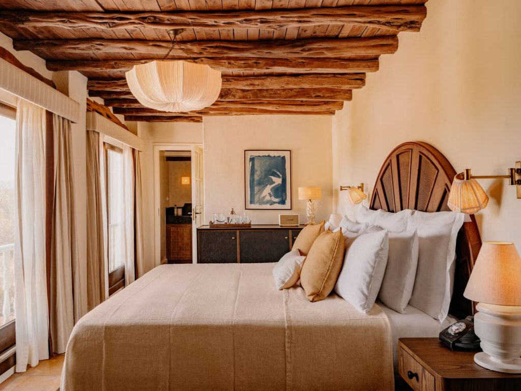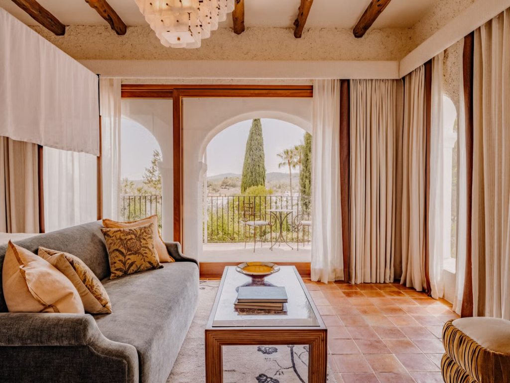Accommodation at Soho Farmhouse Ibiza mirrors this balance between rustic charm and contemporary comfort. Fourteen bedrooms and two villas are thoughtfully designed to complement the rural setting, with warm tones, natural materials, and subtle luxury.