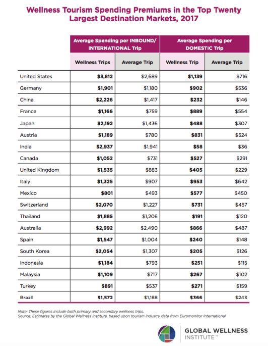 The 2018 report revealed more regional and national data and trends analysis than ever before, including the spending premiums for wellness travellers, as well as which national tourism boards worldwide are actively promoting wellness tourism.